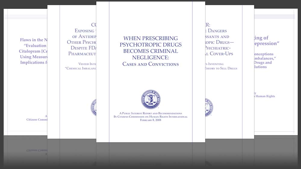 В интересах защиты потребителей в этом докладе представлена история о том, как скрывали опасность антидепрессантов, как ГКЧП неустанно разоблачала этот обман. Это всеобъемлющее последовательное описание того, что было обнаружено во время расследования, проведённого ГКПЧ. Об опасности этих препаратов сообщали также родители, активисты и законодатели, несмотря на усилия тех групп, которые пытались скрыть правду от потребителей.